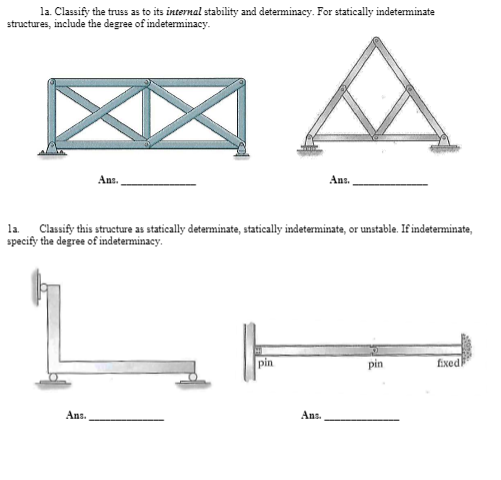 Classify Each Of The Structures As Statically Determinate Statically Indeterminate Or Unstable If Indeterminate Specify The Degree Of Indeterminacy The Supports Or Connections Are To Be Assumed As Stated Holooly Com from holooly.com And in other branches of engineering, ship and aircraft frames, tanks. Once the magnitudes of the redundant reactions are known, the beam becomes determinate and the bending moment and shearing force. Structure is generally classified into two categories as determinate and indeterminate structures or redundant structures for analysis of structures to find forces based on criteria discussed below. • determine the degree of indeterminacy of the structure. Difference between determinate and indeterminate structures. If a part (or member or support) of such a structure fails, the entire structure will there are some formulae from which it can be decided if the structure is determinate or indeterminate. A statically determinate structure is one that is stable and all unknown reactive forces can be determined from the equations of equilibrium alone. This video shows the three different types of structures, these are classified as determinate structure, indeterminate structure and unstable structure.